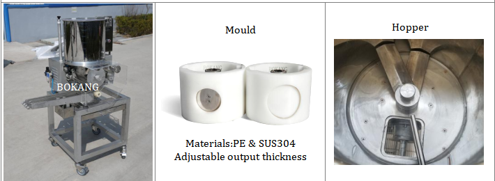 It can be used to produce hamburger patty and chicken nuggets, etc. Endless patterns can design for your products: round, square, ellipse, triangle, heart and some other patterns such as cartoon, star.